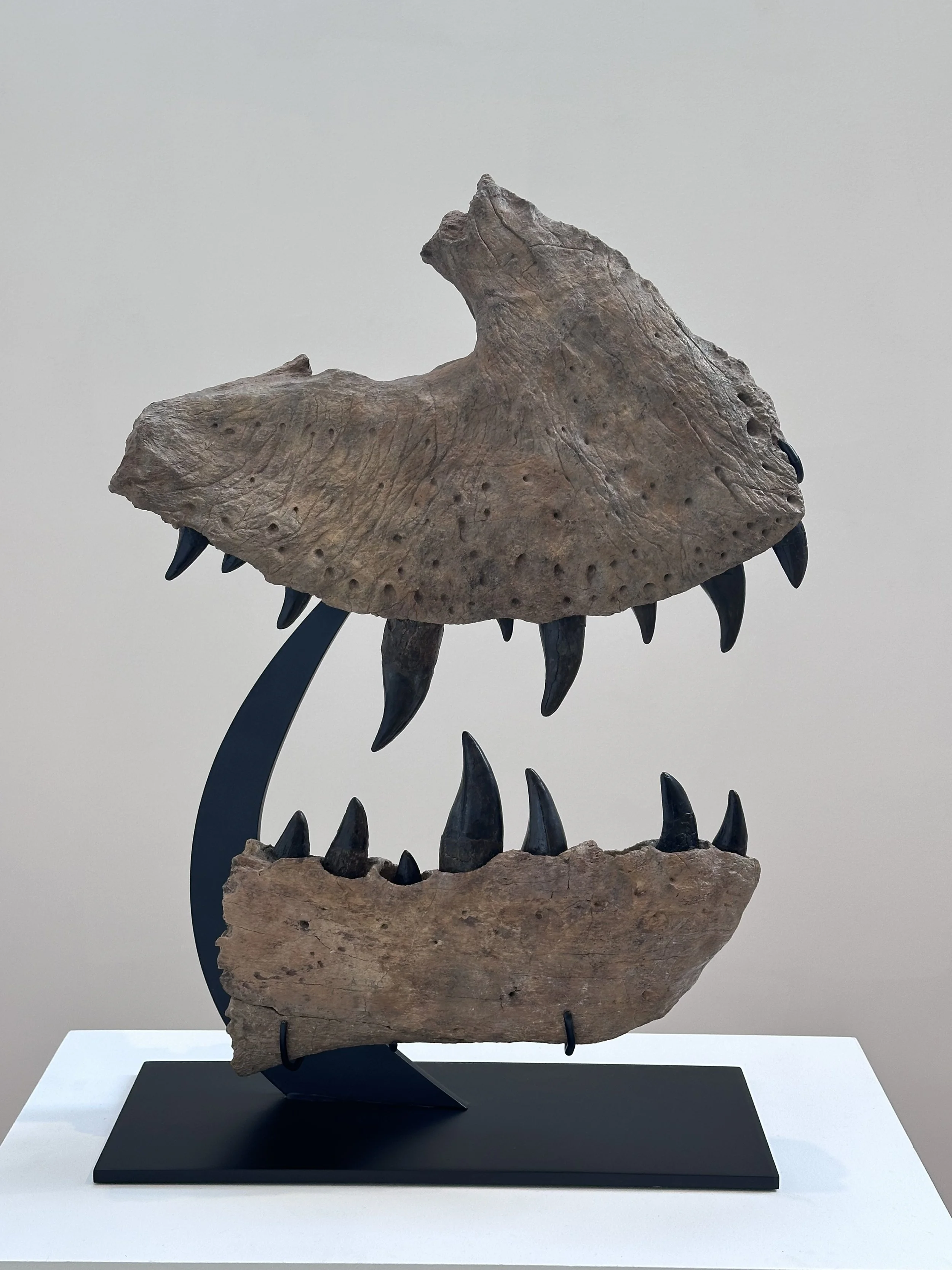 Shortly thereafter the Legacy of the Predator King Complete Tyrannosaurus Rex Jaw Section on a Custom Metal Stand went up for bid. Estimated to go for $180,000-$250,000, the 66 million year old artifact went for $550,000.
